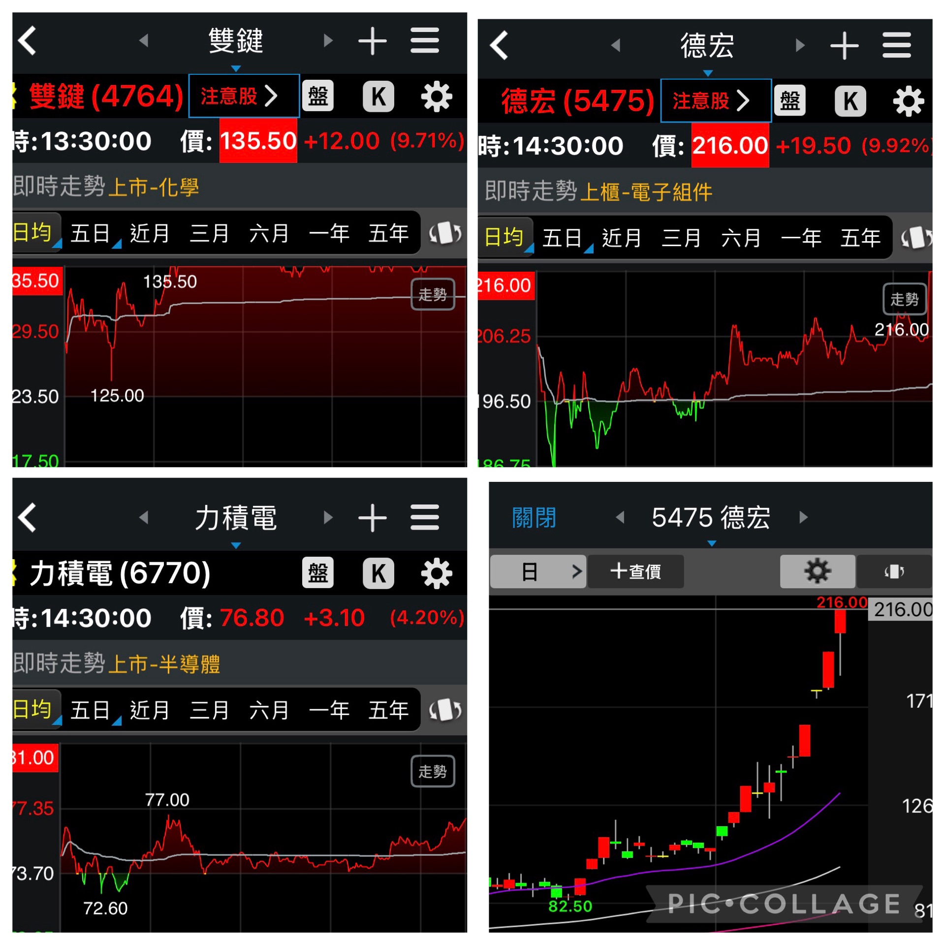 雙燈漲停 德宏5475連2漲停創史高 雙鍵4764連3漲停創波段高
