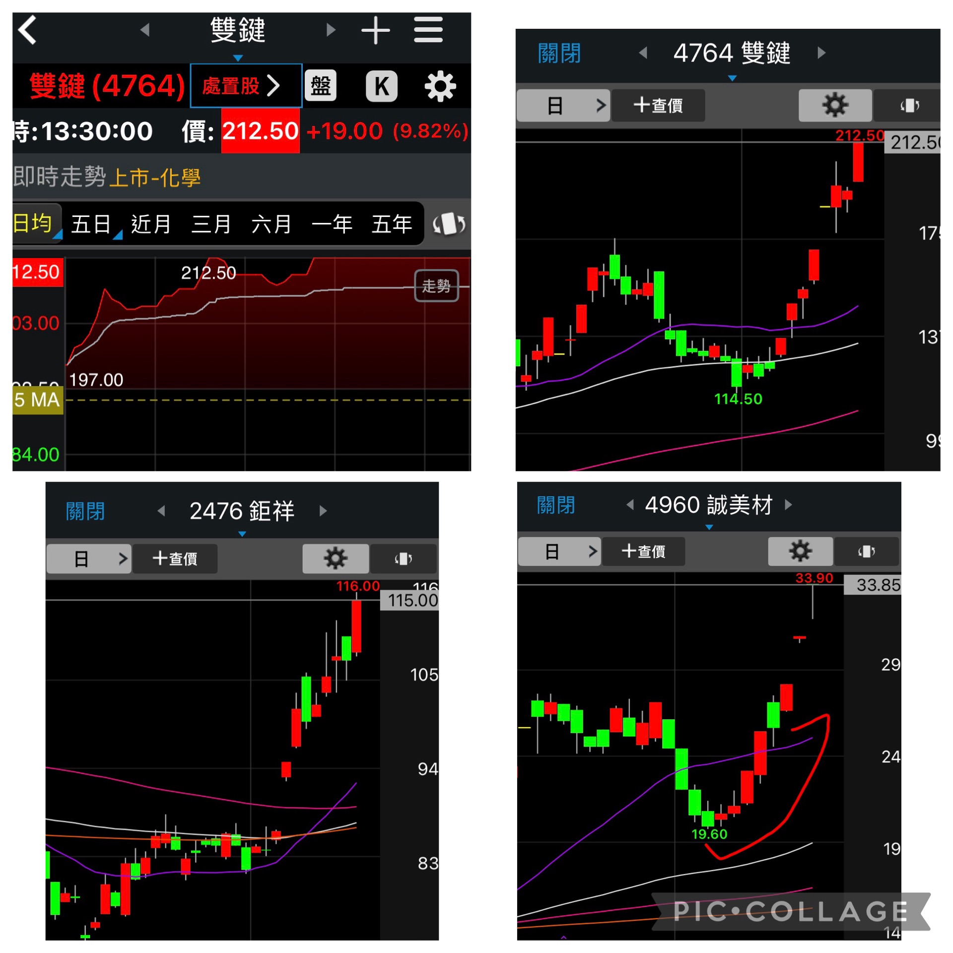 雙鍵4764漲停續創史高 誠美材4960大漲續創波段高 鉅祥2476大漲創波段高