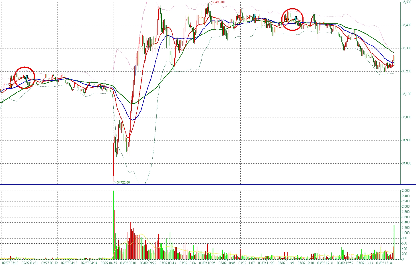 這要從2026/02/27的夜盤說起,當天已經有相當多的空單被佈下;所以,2026/03/02開盤時,控盤者用了一個很有趣的戰術割韭菜。這個戰術"自損800傷敵1000"的策略,換個角度來說;尾盤才是近日會走的趨勢,上午盤是一場割韭菜的作業程序,希望你可以體會我表達的交易本質。