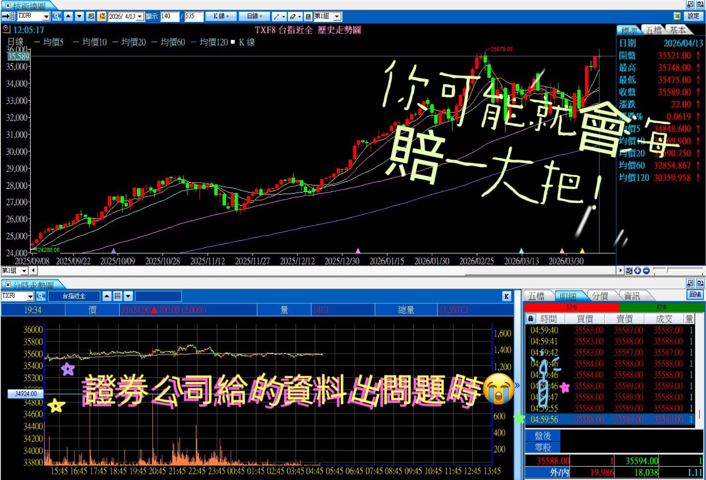 #分時圖上的價位怎麼與K線差很大 #萬一自動化程式單啟動是有海賠的可能