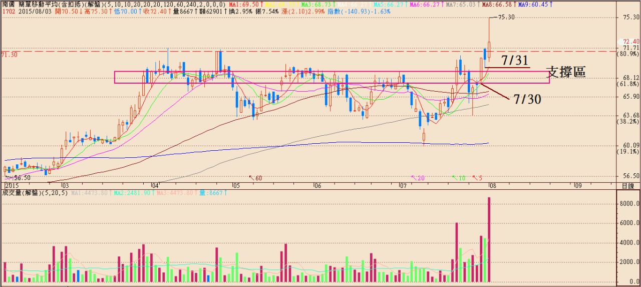 支撐區可用7/30紅K低點當防守、短線操作者7/31黑K也可當停損_這根像是洗盤換手K