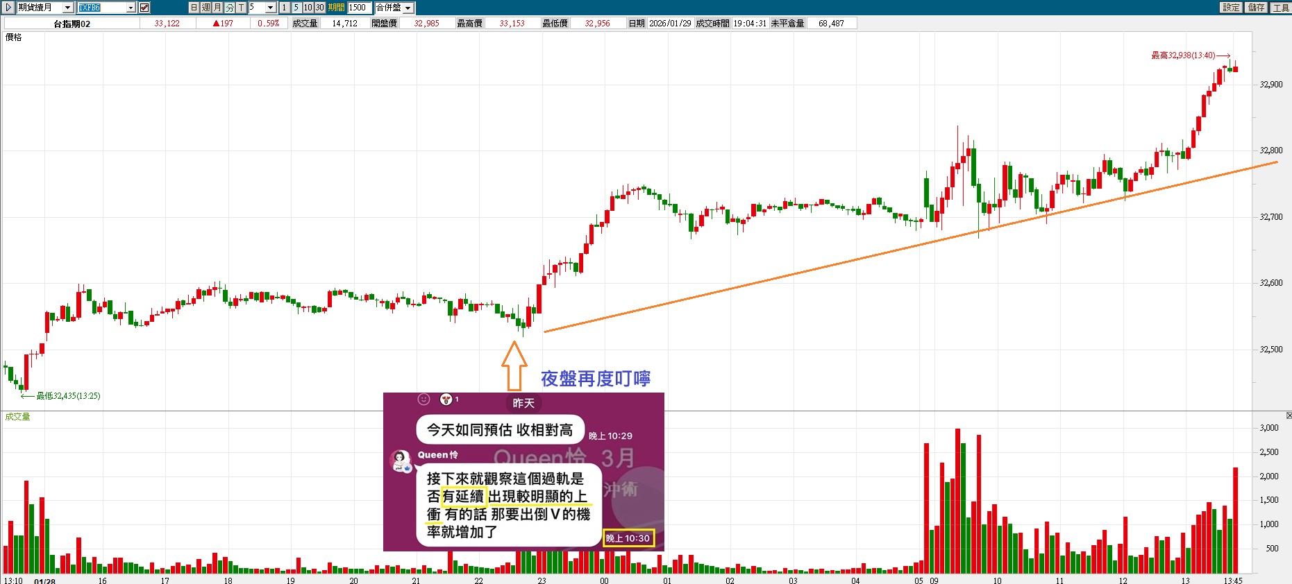 所以夜盤繼續叮嚀後面就觀察增強的日K是否有延續即可