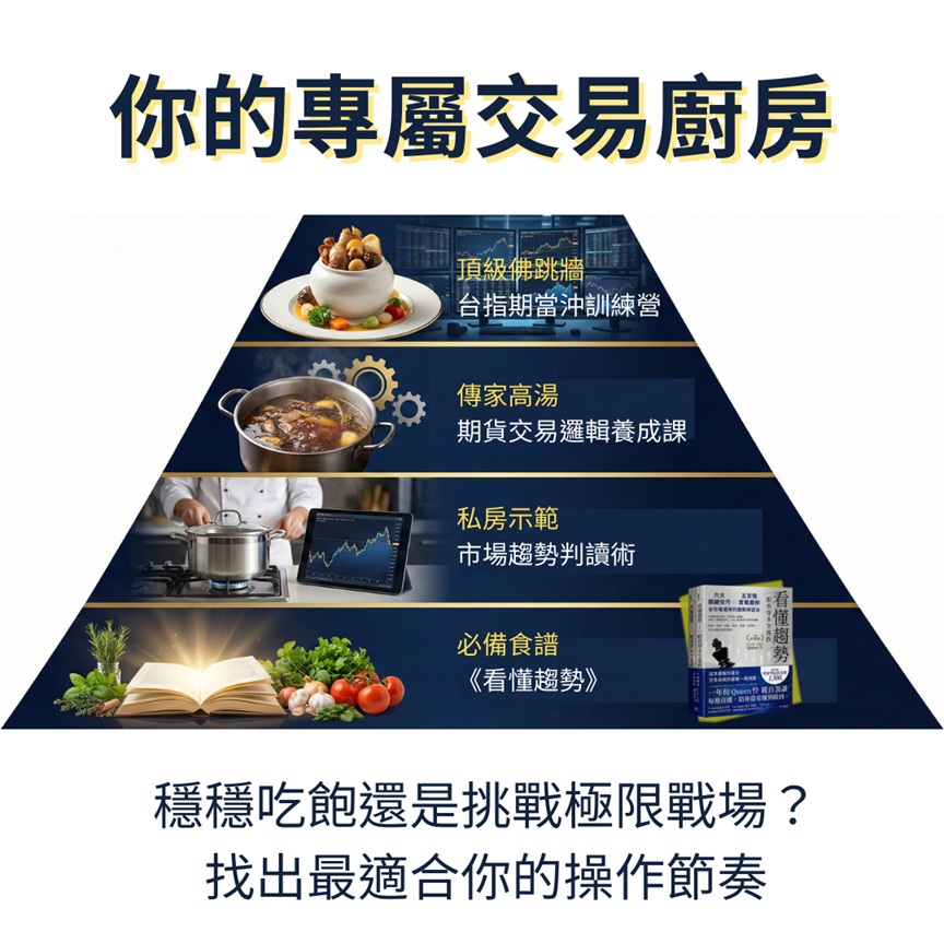 🍲 2. 期貨交易邏輯養成課(一次付費,永久觀看)= 熬製頂級料理的「傳家秘製高湯」