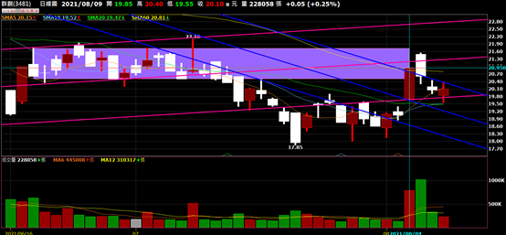群益超級贏家群創日K(自行繪畫)