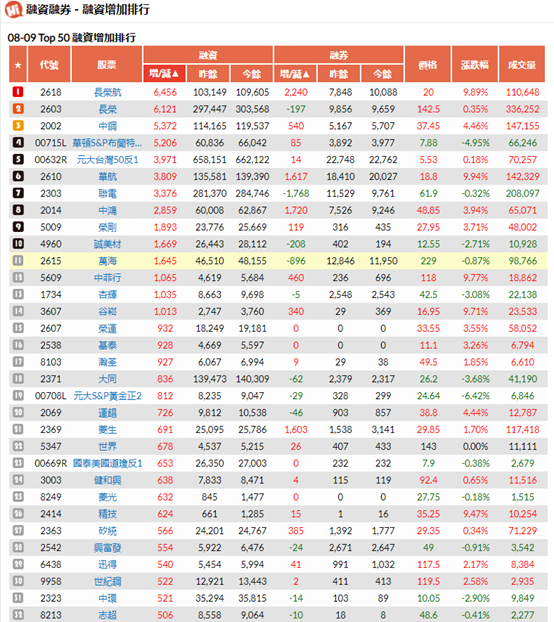 融資融券餘額,取至Hi Stock嗨投資
