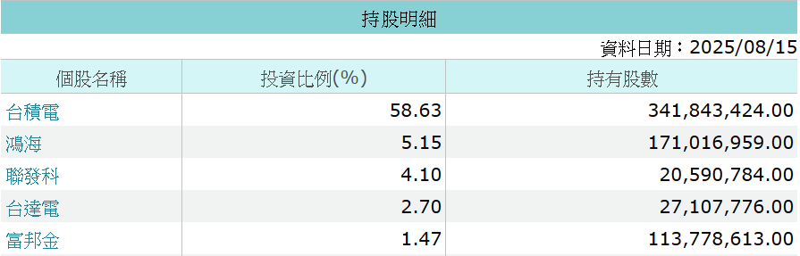 元大0050前五大持股_等於逾1/2的成分是台積電、而鴻海及台達電近期股價也表現強勢