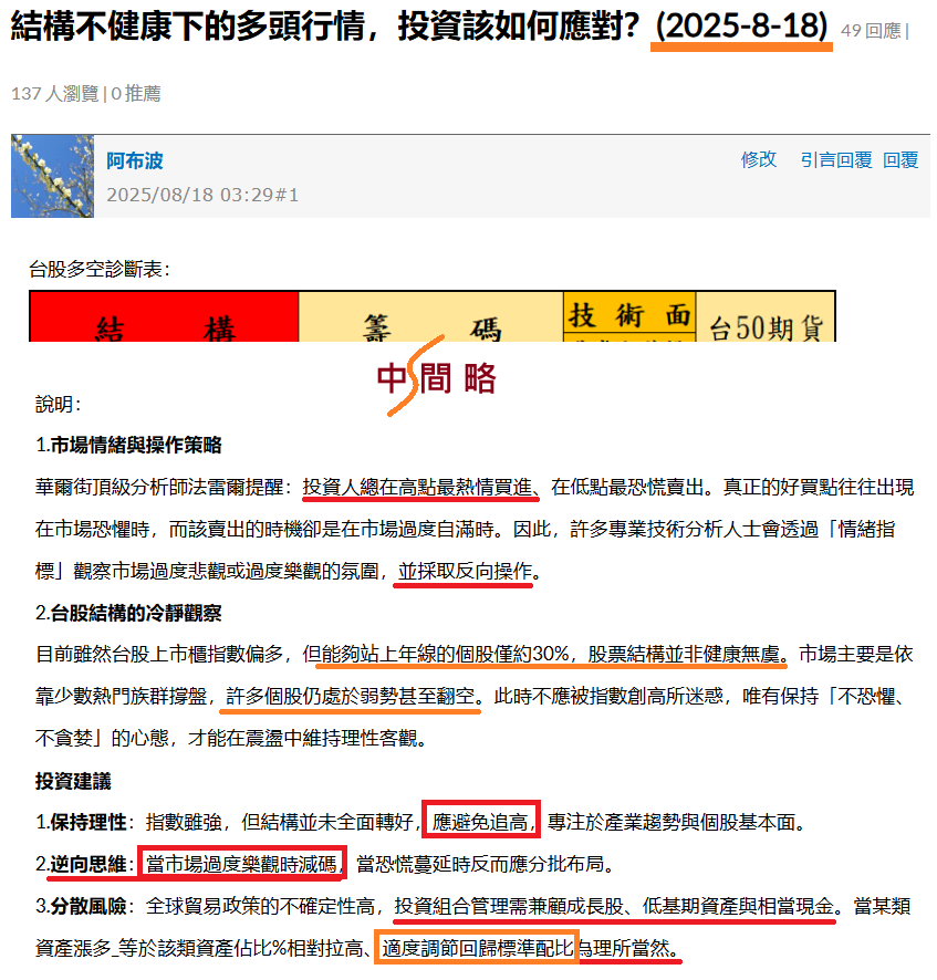 8/18~8/19學院盤前教學參考:反向操作、適度減碼、增加現金及抗波動資產~