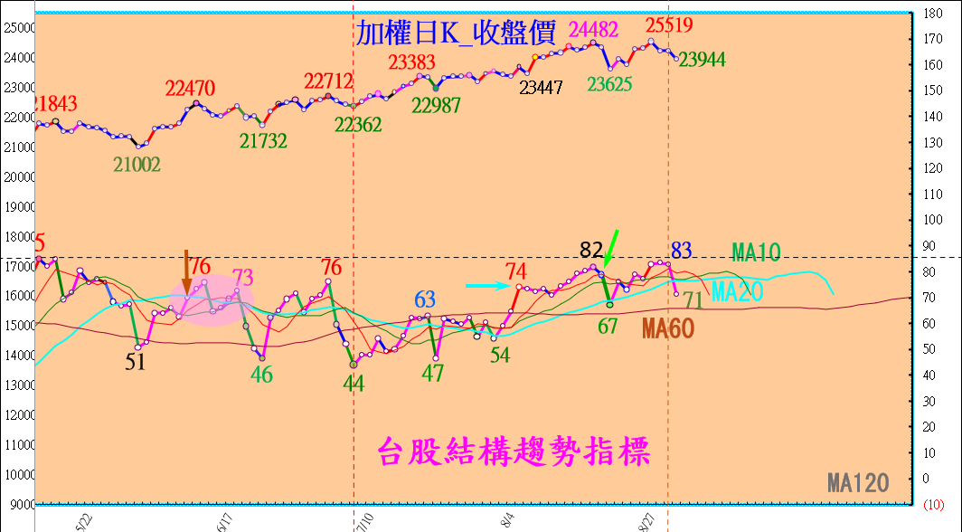 3.加權日MA20扣低翻揚、此處不應殺低,將資金配置在基本面良好、具備長期成長性與股價被低估的企業;在當前不確定性升高的環境下,應加強風險意識,避免盲目追逐熱門小型股。並適度保留現金,提高資金調度靈活度。