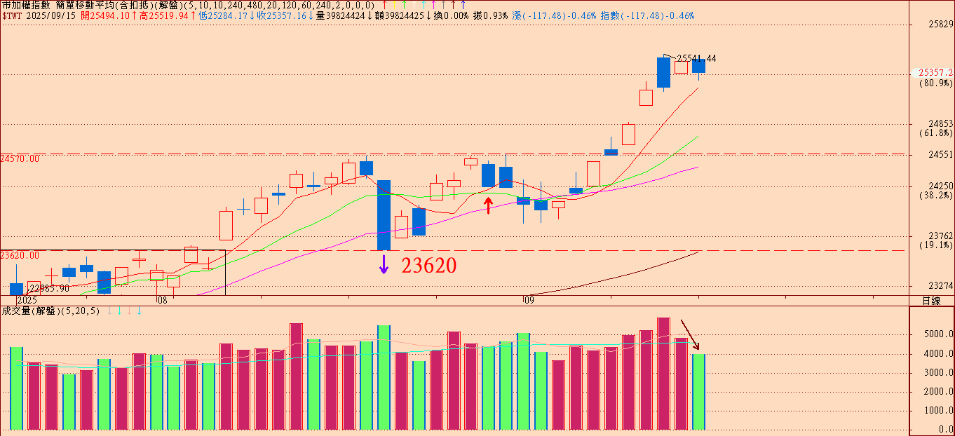 加權今日小跌-117點收盤、量縮格局,但不少熱門股及中小型股重挫