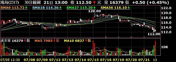 台灣證券交易所公布,7月22日計鴻海、鴻準等21檔成分股票除息交易,其中鴻海發行市值將減少約554億元,占加權股價指數約18.2點,21檔股票除息後,減少30.56點。