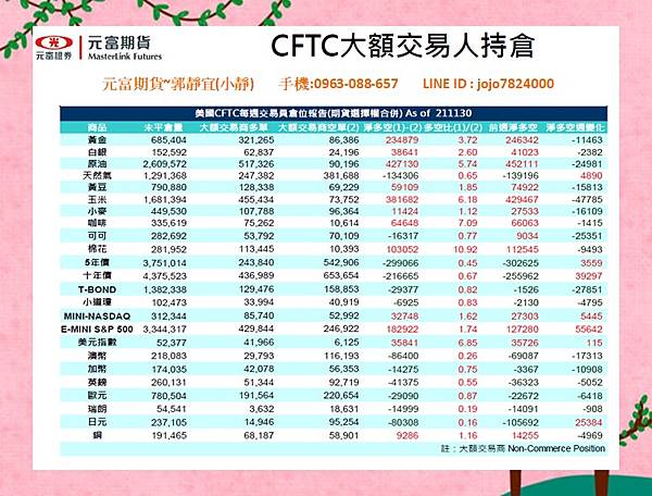 【海期快訊】12月6日~12月10日國際金融焦點數據&CFTC大額交易人持倉)@元富期貨開戶推薦郭靜宜-小靜@手機0963-088-657@期貨全省開戶@期貨線上開戶