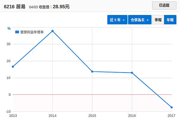 居易(6216)過去幾年營收連續成長,營業利益更是連續四年年增率超過兩位數,然而卻在去年突然出現大幅衰退,如下圖(圖表引用自財報狗網站)。這篇文章試著探討衰退的原因。