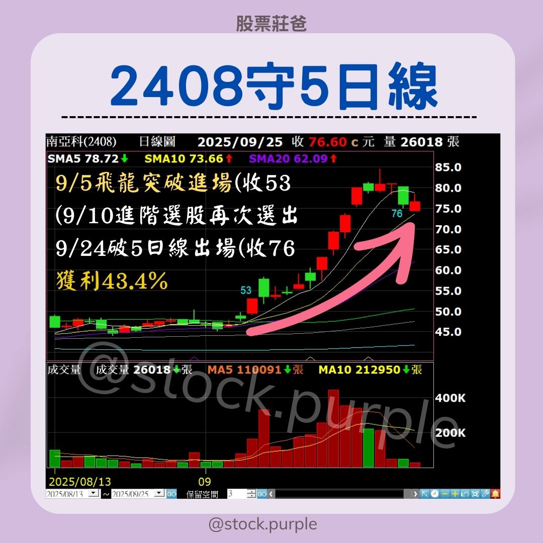最後於9/24跌破5日線,收盤以76元賣出,獲利43.4%。