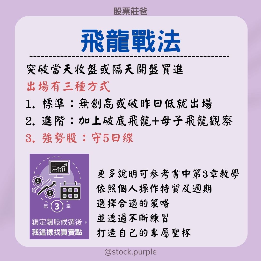 出場的話可以分成三種方式:標準飛龍、進階飛龍、強勢股觀察。