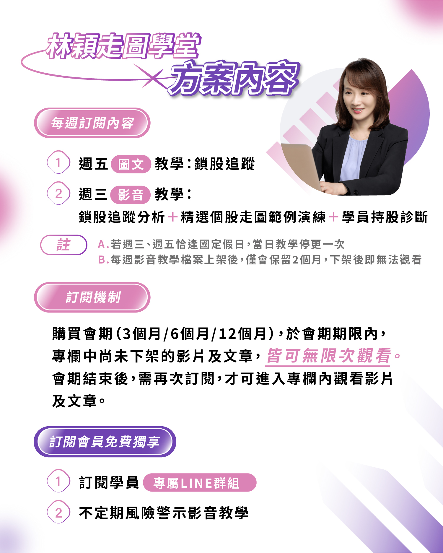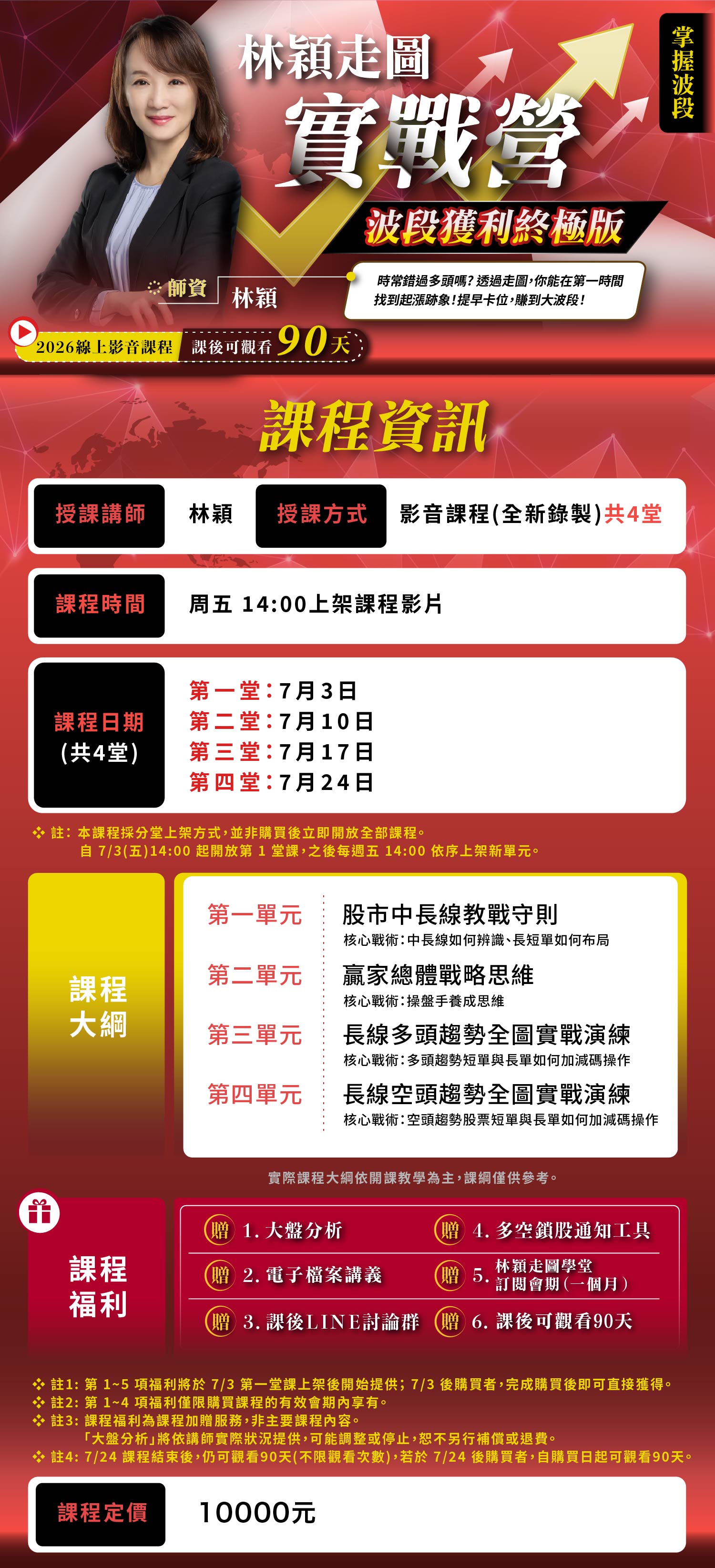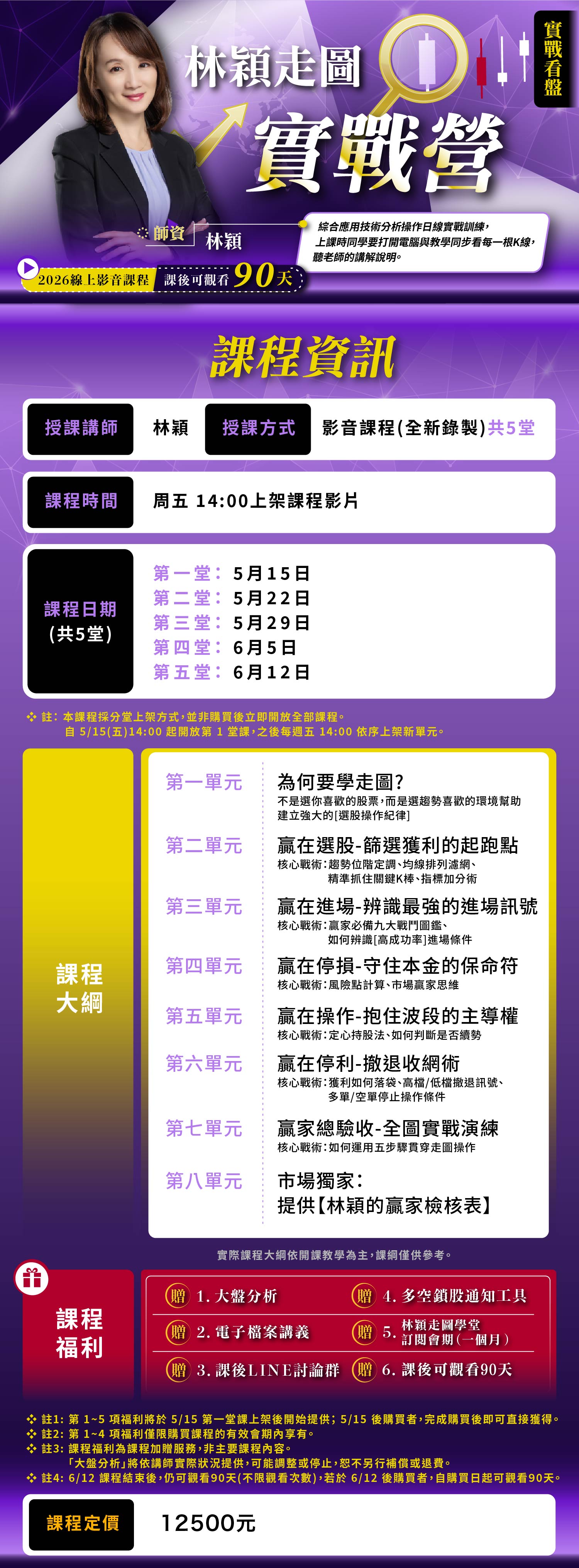 ❖ 註2:課程福利為課程加贈服務,非主要課程內容。 「大盤分析」將依講師實際狀況提供,可能調整或停止,恕不另行補償或退費。