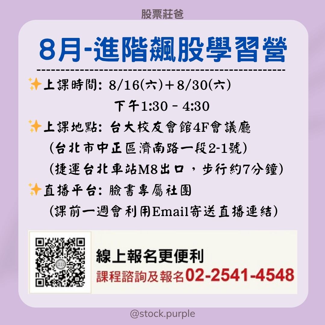 金石堂:https://www.kingstone.com.tw/basic/2015630804100/?lid=search&actid=WISE&kw=找出飆股穩穩賺此外,莊爸在8月有為期兩天的實體學習營,詳細活動資訊,請繼續往下看!