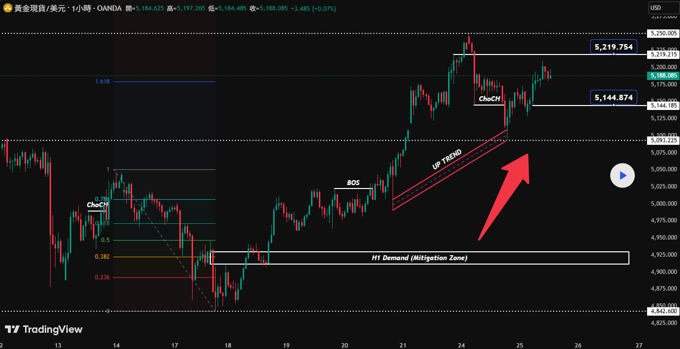XAUUSD 繼續在 H1 時間框架內進行明確的看漲結構交易。市場已通過明確的 BOS 確認了持續性,隨後在先前的價值上持續接納。這種強勁的表現來自於黃金對今天的